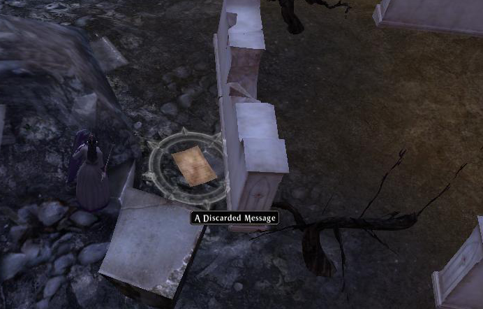 1 & 2: Run west into the open area between the towers. The first two steps are completed simultaneously, as while trying to find the parchments on the ground, kill the 5