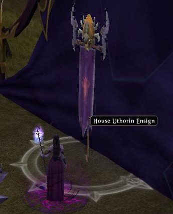 Behind the ten is another item of interest, a House Uthorin Ensign. Interact with this banner to get another tome unlock.