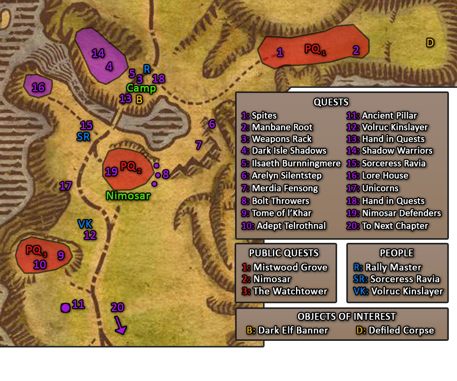 Description: Centered around a courtyard full of elves, this public quest is the first one encountered. Due to the fact that it is so close to the camp and because there are always a lot of new people starting, it has almost always enough players to see it through.