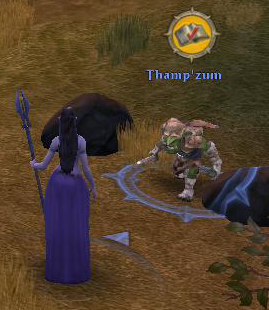 5: At the southern end of the forest is a goblin called Thamp'Zum. Turn in Use of Allies to him and get your reward.